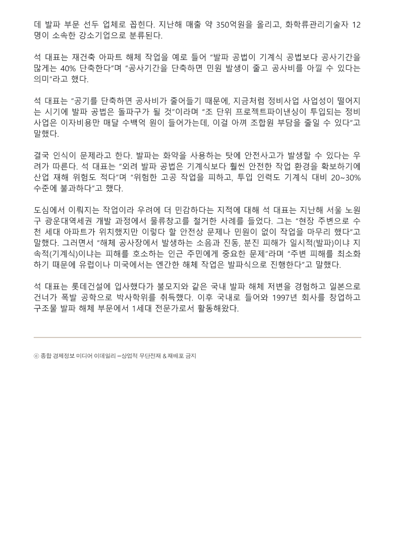 '싸고 빠른 '발파해체' 사업비 절감... 폭발물 인식 아쉬워