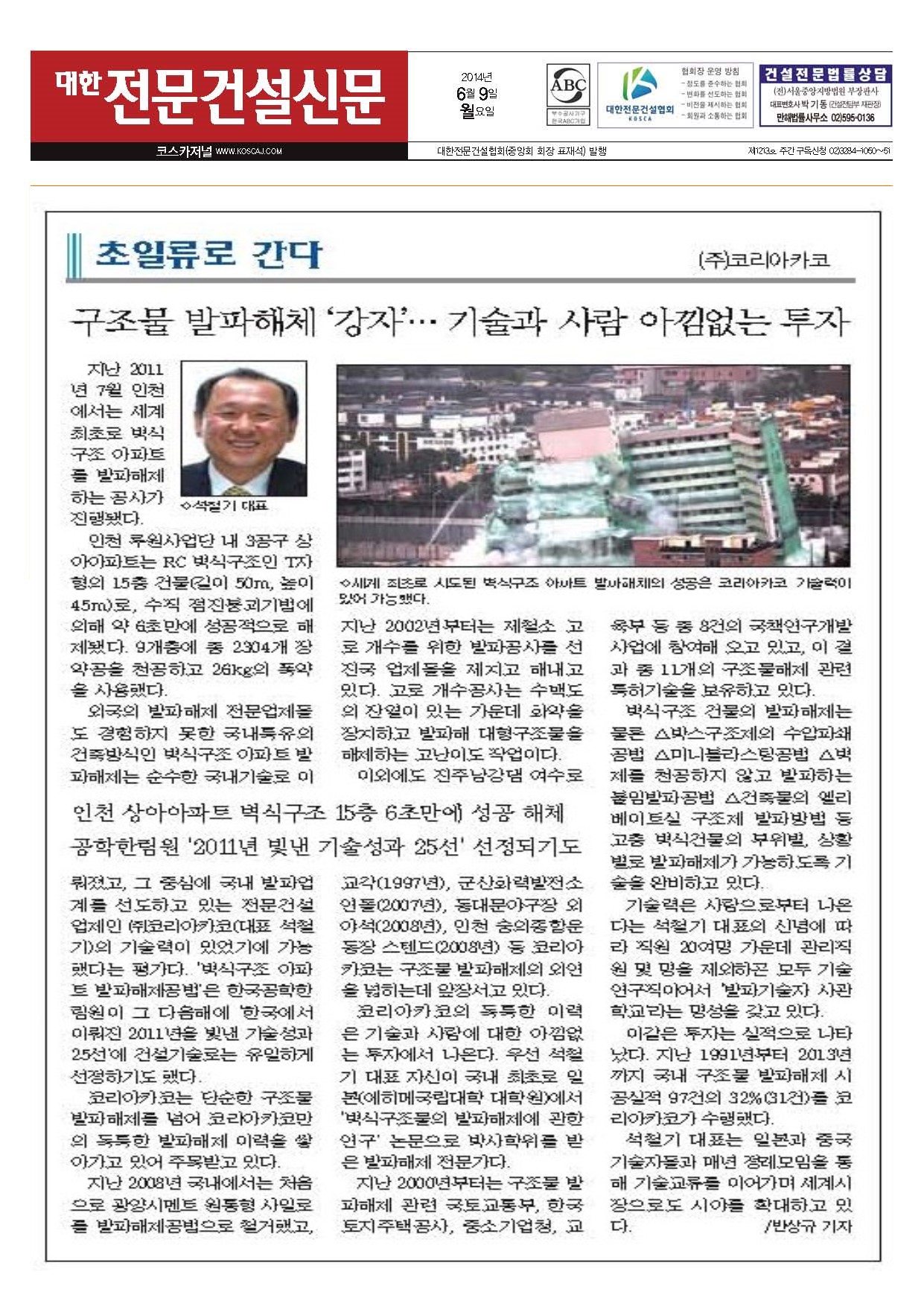 2017년 05월 01일 대한전문건설신문 기사